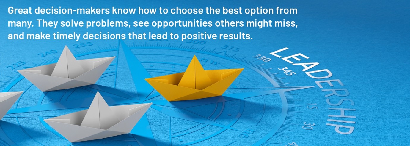 Simply put, great decision-makers know how to choose the best option from many. They solve problems, see opportunities others might miss, and make timely decisions that lead to positive results.